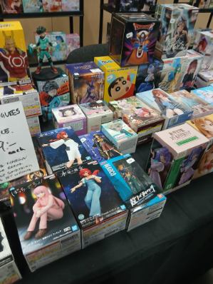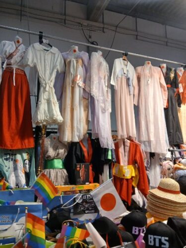 Det fanns en mängd plushies, klistermärken, pins, nyckelringar, spel, samlarkort, cosplay dräkter, smycken, tröjor, figurer, muggar, även 3d bilder. De hade även en plats där man kunde sitta och spela. Såg några ungar som spelade Mario kart.