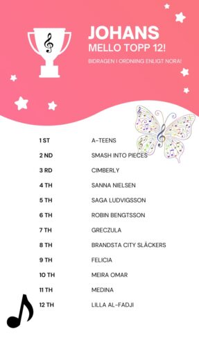Melodifestival-finalen, topp 12 enligt Variabeln!